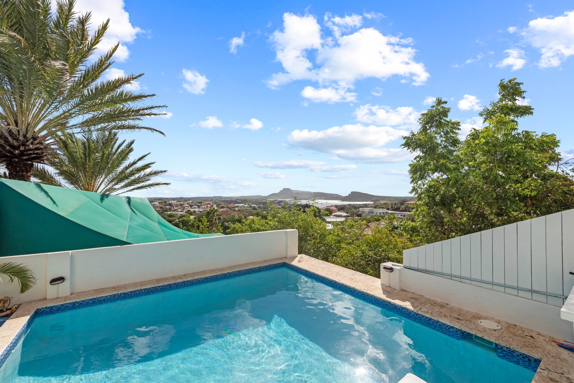 De villa ligt op de het hoogste punt van Jan Thiel dus een lekker windje is verzekerd.